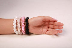 Our set of 3 slim scrunchies are perfect for your tight hairstyles and are designed to minimize breakage, dryness, and frizz. Made from satin, they won't break like traditional hair ties. Say goodbye to hair damage and hello to healthy, gorgeous locks.